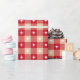 Une ferme traditionnelle rouge et kraft en vichy motif aux élégantes étoiles blanches.