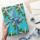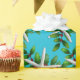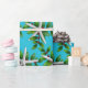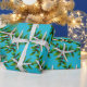 Starfish et papier d'emballage bleu saint aqua de Noël sur un rouleau. Un design contemporain utilise des cadeaux de la mer pour créer un papier d'emballage unique. Des étoiles de mer blanches, des saints verts et des baies rouges confèrent à différents motifs une jolie couleur bleue tropicale.