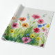 The image shows a watercolor painting of wildflowers in a loose, flowing style.