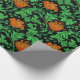 Papier enveloppé dans un motif vintage de damas florales William Morris de fleurs et de feuilles d'anémones, numériquement rehaussé et coloré - feuilles vert émeraude, et fleurs dans les tons de mandarine profonde orange et or sur un arrière - plan noir