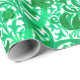 Papier enveloppé dans une vintage impression florale William Morris de lys stylisés et d'Irises, numériquement rehaussés et colorés, dans des tons clairs à vert jade foncé sur un arrière - plan blanc