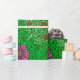 Papier enveloppé dans un vintage William Morris, Art Nouveau, imprimé damassé marigold de feuilles et de fleurs, numériquement rehaussé et coloré, dans émeraude profonde et vert citron, accentué de rose fuchsia et orange de corail, sur un arrière - plan vert foncé
