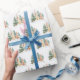 This fun and whimsical wrapping paper features watercolor winter trees background.