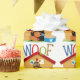 Un chien mignon avec une boule et un plat de nourriture, une maison de chien, et le texte coloré qui lit WOOF sur les T-shirts Woof Dog, sweat - shirts à capuche, tasses, sacs, cartes, autocollants, porte - clés, boutons, magnets, tableaux d'effacement à sec, coques et manches électroniques, plaques et serviettes en papier, et beaucoup d'autres articles de conception de chien!