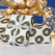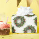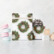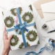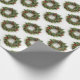 Un rouleau de papier d'emballage de Noël comporte une couronne à feuillage persistant avec des baies rouges - amusant pour offrir un cadeau de vacances
