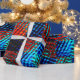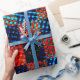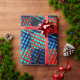 Papier Cadeau Xadrez azul, laranja, faux sujo ou manchado.