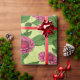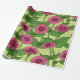 Papier Cadeau Zinnias rose sur vert clair