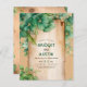 Ce faire-part de mariage rustique vintage et abordable de St. Patrick's Day présente un cadre vintage plein de charme orné d'une verdure vibrante et d'un code QR unique pour RSVP en ligne. Le cadre en bois est magnifiquement orné de verdure luxuriante, élégamment placé sur trois coins, créant un design visuellement époustouflant. Bien qu'il s'écarte du motif traditionnel du trèfle, l'invitation exhale l'élégance avec sa police celtique et sa végétation abondante, ce qui en fait un choix parfait pour une célébration mariage mémorable de la Saint Patrick.