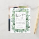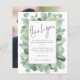 Une alternative de BUDGET rapport qualité-prix sur un format plus petit 4,5 x 5,6” semi-brillant 110lbs, qui est d'une épaisseur similaire à une carte postale (mais ne convient pas comme carte postale). VEUILLEZ NOTER qu'il y a UNE invitation par feuille. Remerciement de mariage photo avec cadre en eucalyptus. De luxuriants éléments botaniques verts encadrent la typographie, avec Merci dans un élégant script, et votre photo au verso en souvenir pour vos invités. Personnalisez facilement le reste du texte et remplacez la photo d'exemple au verso par la vôtre.
