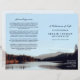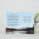 Programme funéraire calme et magnifique avec une photo d'un lac de montagne un matin brumeux dans la forêt. Ajoutez une photo de votre être aimé avec son nom et ses années de vie et de nécrologie. Ajoutez la commande de service, les hommages et les accusés de réception.