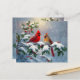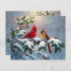 Une paire de cardinaux rouges du nord perchent sur une branche sainte recouverte de baies rouges et de neige.