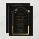 Celestial Black Gold QR Code Quinceañera Invitations dispose d'un élégant soleil doré, lune et étoiles avec un cadre doré sur un arrière - plan noir. À l'intérieur est votre Quinceañera personnalisée d'informations d'invitation. Au verso, ajoutez des informations supplémentaires telles que votre site Quinceañera et votre code QR. Personnalisez en modifiant le texte dans les zones de texte. Conçu pour vous par Evco Studio www.zazzle.com/store/evcostudio