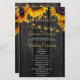 Modèle de programme de cérémonie de mariage rustique élégant et économique, avec de beaux bouquets de tournesols orange jaune vif et des guirlandes de lumières scintillantes sur un fond en bois brun foncé de style campagnard. +++++++++++ + Personnalisez-le avec vos informations. +++++++++++ Convient aux mariages rustiques, champêtres, vintage chic, en plein air, été ou automne.