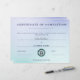 Moiré moderne effet sexe neutre certificat d'achèvement. Couleurs : turquoise et bleu.