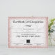 Papier Certificat d'achèvement rose en marbre d'or
