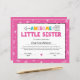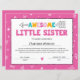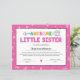 Papier Certificat de petite soeur rose