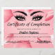 Certificat de Récompense d'Achèvement Lash Tech Rose
