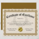 Papier Certificat d'excellence Gold personnalisable 8,5 x