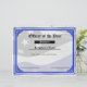 Papier Certificat d'indicateur de ligne bleue mince perso
