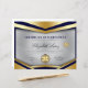 Ce prix professionnel de certificat de réussite comporte des bleus et or, et un arrière - plan gris détaillé. Comprend deux médailles : une médaille d'or sur mesure et une médaille d'or bleue centrée sur le bas avec des étoiles bleues et une médaille d'or.
