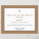 Un certificat de conception typographique minimal pour votre employé du mois ou de l'année. Vous pouvez facilement personnaliser tous les mots et également changer les polices, le texte et la couleur de fond doré si vous le souhaitez, via l'option Cliquer pour personnaliser davantage. Vous pouvez également insérer votre logo d'entreprise en haut.