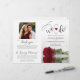 Ce magnifique programme de mariage est à la fois moderne et élégant. Le design plié do-it-yourself est doté d'une écriture moderne sur la première lecture "we do" avec le nom du couple et le mariage date/lieu. Il y a une photo d'une belle rose rouge à long tige réfléchissant dans un bassin d'eau avec des vagues et des ondulations. L'intérieur a la même fleur qu'un arrière - plan filigrane avec de l'espace pour la cérémonie et les détails de la fête de mariée. Le dos a votre photo, avec l'espace pour une note de remerciement personnalisable, et une note commémorative pour reconnaître les proches perdus. Sophistiqués, élégants et chics, ces programmes ajouteront classe et style à votre célébration mariage. VEUILLEZ NOTER : Ces programmes sont livrés sous forme de feuille de papier plate et devront être pliés. Il y a une variété de choix de papier, mais l'option semi-brillant est un stock de carte légère et sera difficile à plier proprement, donc nous vous recommandons de choisir une autre option.