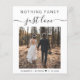 Un hébergement économique ou une faire-part de mariage privé et une invitation décontractée à la réception qui comprend votre photo et "Nothing Fancy Just Love" en simple typographie et un script élégant avec des swashes. Sous votre photo, ajoutez vos noms et votre date de mariage ou de réception. Au verso, entrez l'adresse de votre site Web mariage pour créer un code QR pour que vos invités puissent analyser en ligne RSVP et obtenir les détails du mariage et ajouter vos noms dans un script signature. Ce papier semi-brillant budgétaire est similaire en poids au papier photo. Une version plus grande de 5x7 traditionnelle carte stock est également disponible (message nous pour le lien).