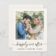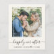 Faire-part de mariage crème légère simple et chic, économique, avec votre photo dans un cadre carré découpé, "heureux à jamais" dans un script chic avec des swashes et vos prénoms et votre date mariage réunis par un coeur dans la typographie moderne. Au contraire, personnalisez votre invitation en typographie élégante.