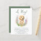 Invitation vos amis et votre famille pour célébrer l'arrivée de votre nouveau bébé garçon avec cette adorable invitation de chiot bonjour, accessoires de fête et cadeaux. Cette invitation baby shower présente un récupérateur doré à l'aquarelle peint à la main, parfait pour les amoureux de les chiens ! Le design est moderne et tendance, avec un jeu de couleurs vert sage et le texte "Oh Boy" pour célébrer l'arrivée prochaine d'un bébé garçon. DROIT D'AUTEUR © 2023 Judy Burrows, Black Dog Art - Tous droits réservés. Oh Garçon Chien Chien Chien Moderne Sage Vert Baby shower Invitation