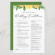 Pourquoi faisons-nous cela ? Ajoutez cette carte de jeu de traditions Mariages amusantes et festives à votre événement. Il dispose d'une guirlande aquarelle de citrons, d'oranges et de verdure avec un script fantaisiste. Personnalisez en ajoutant des textes au verso de la carte. Ce jeu de Traditions Mariages est parfait pour les jeux de douche nuptiale d'été et les jeux wedding showers.