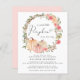 Une belle et élégante petite fille à petit prix douche par mail invitation avec "une douce petite citrouille est en route" écrit dans la typographie moderne douce gris et un script avec un essaim de coeur, et une couronne de citrouille rose pastel et corail et aquarelles florales. Personnalisez facilement le nom de la mère et le baby shower par mail en utilisant une simple typographie grise.