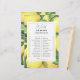 Carte de douche nuptiale à thème citron d'aquarelle illustrant l'aquarelle du motif citron et branche de verdure. Élégante écriture calligraphique, parfaite pour les mariages du printemps, de l'été ou de l'automne. Éléments correspondants disponibles.