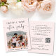 Étage rose clair abordable ou faire-part de mariage privé et invitation à la réception qui comprend votre photo de jour de mariage et "Happily Ever After Party" dans un mélange de typographie simple et un script chic avec des swashes. Ajoutez vos prénoms et votre date de mariage. Au contraire, entrez l'adresse URL de votre site Web mariage pour créer un code QR pour que vos invités puissent scanner tous les détails et à RSVP en ligne, personnalisez vos coordonnées de faire-part et de réception et ajoutez vos noms dans un script signature.