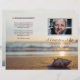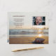 Programme funéraire sur le thème de la plage avec photo d'un conque allongé sur une plage au lever du soleil. Ajoutez une photo de votre être aimé avec son nom et ses années de vie. Sur le dos vous pouvez écrire la nécrologie et le programme. Pliez-le vous-même pour un programme pratique !