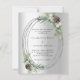 Pour un mariage d'hiver. Un arrière - plan à l'aspect faux argenté décoré de cônes, de baies blanches et de verdure. Un cadre en faux argent. Personnalisez et ajoutez vos noms et détails. 1 feuille = 1 invite imprimé bord à bord.