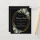 Arrière - plan de couleur noire décorée de cônes, de baies blanches et de verdure. Un cadre ovale en faux or. Personnalisez et ajoutez les détails. 1 feuille = 1 invite imprimé bord à bord.