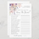 L'amour est en fleur : Connaissez-vous bien la mariée ? Jeu. Ajoutez une activité amusante et fantaisiste à votre douche de mariée avec ce jeu de questions charmant, parfait pour une célébration sur le thème des fleurs sauvages "L'amour est en fleur". Les invités peuvent tester leur connaissance de la mariée en répondant à une série de questions amusantes et personnelles, en écrivant leurs réponses dans les espaces prévus.