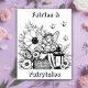 Page de coloriage à thème de conte fée. Page de coloriage pour enfants ou adultes avec une jolie fée lisant un livre dans un lot de grandes fleurs à côté d'une lanterne.