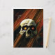 Un crâne malsain avec des prises de vue brillantes et un arrière - plan sombre avec des rayures d'orange, de marron et de noir. Joyeux Halloween, mortels.