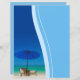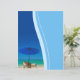 Papier à lettres ou papier à en-tête blanc sur le thème de la plage offrant une vue sur l'océan tropical avec parasol et transats. Idéal pour la location de vacances, d'hôtels côtiers, d'entreprises balnéaires ou de correspondance personnelle.