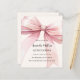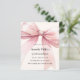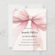 Arrière - plan beige douce, crème, décorée d'un grand arc rose. Personnalisez et ajoutez un nom et des détails du parti. 1 feuille = 1 invite imprimé bord à bord.