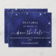 Un moderne et élégant Save the Date pour un mariage. Un arrière - plan bleu marine décoré avec de la poussière de parties scintillant en faux argent. Personnalisez et ajoutez une date et des noms. Le texte : Save the Date est écrit avec un grand script de style à la main tendance.