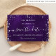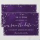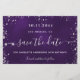 Une carte Save the Date glamour pour une fête d'anniversaire de 50e (ou tout âge). Un arrière - plan violet de couleur inégale. Décoré avec de la poussière de parties scintillant en faux argent. Le texte : Save the Date est écrit avec un grand script de style à la main tendance.