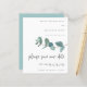 Budget Eucalyptus Script Mariage QR Code Enregistrer La Date. Un prix économique PETIT 4,5 po x 5,6 po alternatif. Disponible dans un STOCK SEMI-GLOSS 110 lb CARD qui est l'option par défaut (plus épais pour les invitations), OU un STOCK SATIN FINISH 80 lb THINNER PAPER (idéal pour les boîtiers). Ajoutez votre code QR à votre site Web mariage au verso. Style minimaliste moderne avec une seule branche de feuilles d'eucalyptus bleus turquoises venant du côté droit et un script informel pour Save Our date. personnalisez facilement le reste du texte à vos détails.