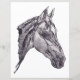 Une image artistique en nuances de gris, de style graphique qui représente un portrait de la tête d'un cheval. Juste une beauté équine.