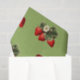 Papier de soie fraise sur fond vert mousse