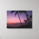 Impression paysagère en toile d'un ciel rose et violet au coucher du soleil sur une plage de palmiers en silhouette noire sur l'île tropicale de Maui, Hawaii. Superbe décoration sur votre mur !