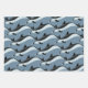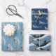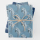 Papier d'emballage dauphin, en trois modèles et couleurs, imprimé sur trois grandes feuilles qui sont livrées roulées et non pliées. Les couleurs bleu foncé et gris-bleu présentent différents types de dauphins nageant. Les modèles sont parfaits pour toute célébration d'anniversaire d'adulte ou pour offrir un cadeau lors d'une fête estivale.