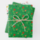 Feuilles de papier motif vert fleur sauvage rouge et jaune.