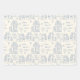 Design doux de maisons et d'arbres en gris bleu sur un fond crème.